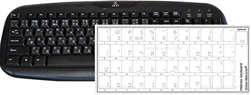 HEBREW WITH WHITE LETTERS KEYBOARD STICKERS TRANSPARENT FOR COMPUTERS LAPTOPS DESKTOP KEYBOARDS