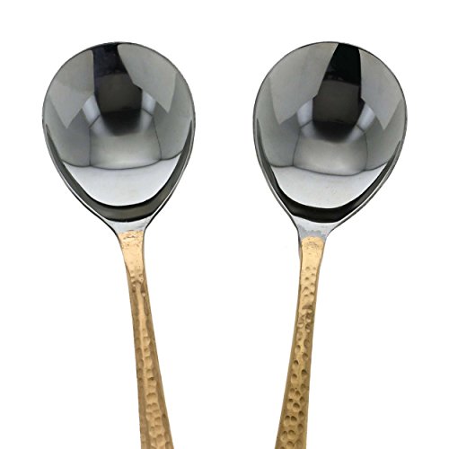 Insideretail Indian 7-Inch Serving Spoon with Hammered Handle, Medium, Copper, Set of 12