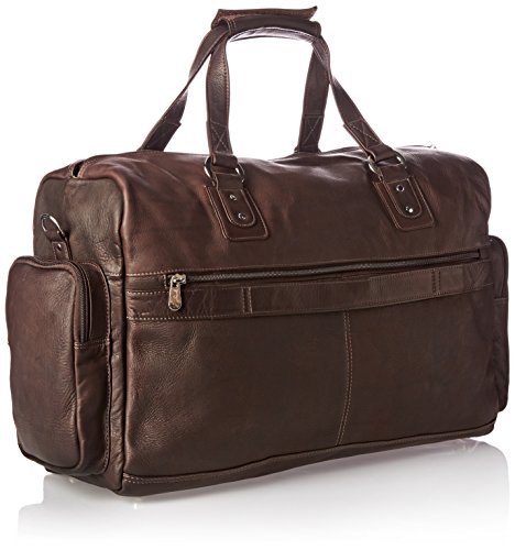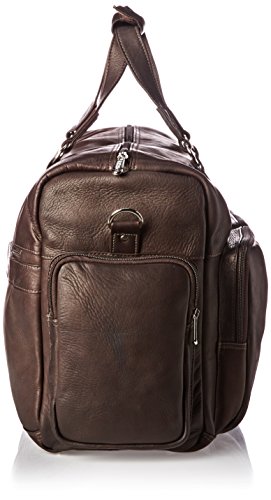 -. Feature : Two gusseted front pockets, plus a side gusseted pocket on each side. One zip-opening to large main compartment with an interior zip-pocket. Large rear zip-pocket, double straps, adjustable/detachable shoulder strap, and a back strap to attach to a telescopic handle / Full grain genuine leather, made from full grain cowhide / Handcrafted in Colombia / Leather improves with age as it absorbs the oils from your hands and assumes a classic, worn look / 18 x 11.5 x 7 / Pockets: 1 interior zip, 4 exterior