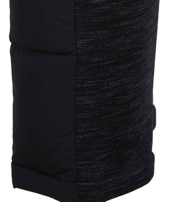 멜란지 컬러 바탕의 앞면으로 퀼팅 디테일이 어우러진 패딩을 배색하여
