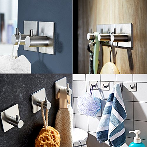 2. [DURABLE HEAVY DUTY MATERIALS] - Adhesive hooks is made of upgraded 304 Brushed Stainless Steel, high load-bearing capacity, ensuring quality and longevity.