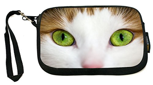 -. Title : UKBK Close-Up Of Lime Green Eyed Cat Neoprene Clutch Wristlet