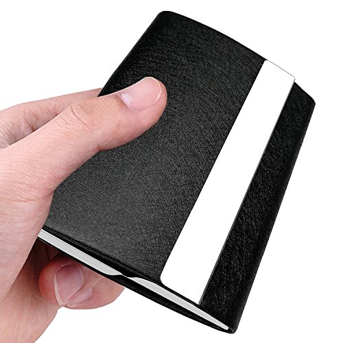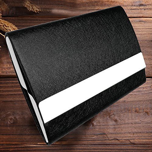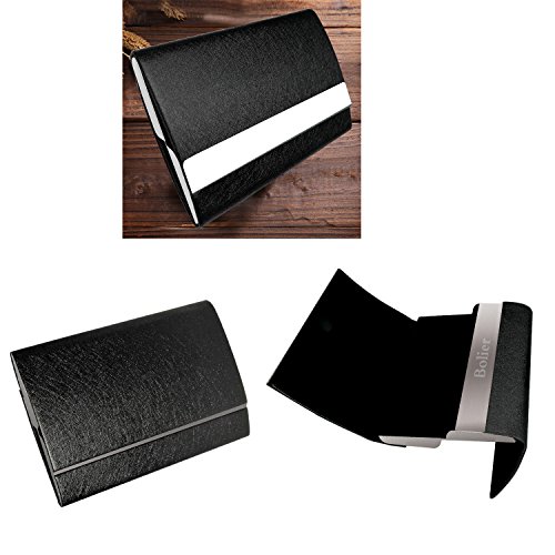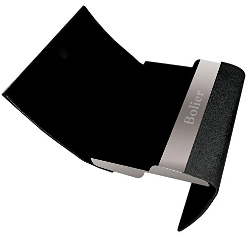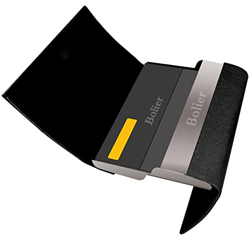Bolier Professional Business Card Holder Double Sided 100% Handmade Leather Business Card Case for Men and Women Black