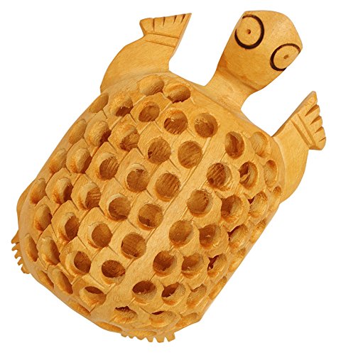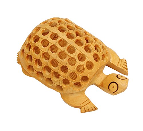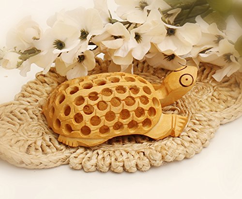 SouvNear 4" Lucky Sea Turtle Statue Unique Brown Wooden Tortoise Figurine Charm Items - Old Decorative Funny Sculpture Paperweight / Decor / Centerpiece