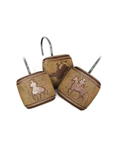 Western COWBOY horse bathroom SHOWER curtain HOOKS NEW