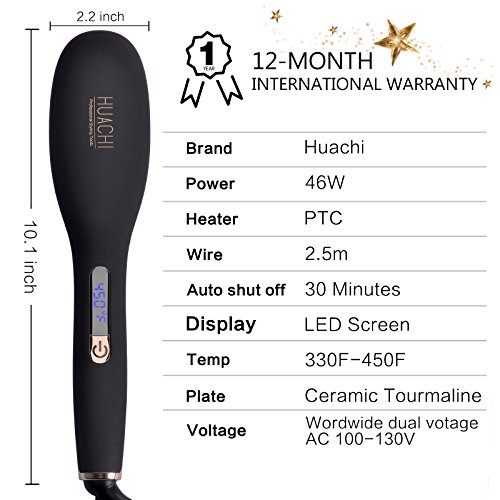 7 HEAT SETTINGS GREAT FOR ALL HAIR TYPES: The Huachi straightening brush can be adjusted to 7 different settings from 330F-450F. Suitable for all hair types: fine, colored, wavy or coarse hair.