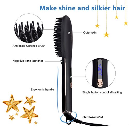 Huachi Hair Straightener Brushstraightens hair 5 times faster than the traditional flat iron, bringing you a sleek, shiny and long-lasting hair for a whole day.