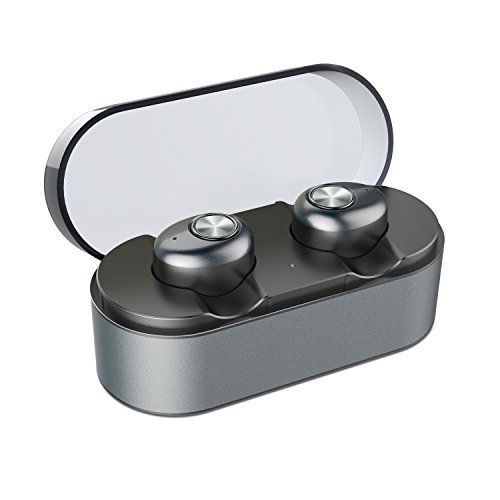 -. Feature : TRUE WIRELESS EARBUDS:Mini True wireless earbuds adopt bluetooth 4.2 which is better than bluetooth 4.1, it features greater power conservation and be effortlessly paired. / SEPARATE WIRELESS: Cables headphones are the past,true wireless headphones will give you free audio, and enjoy hands-free calling with the mic.No more worries about the cord bouncing and no more noise when you move. / PORTABLE CHARGING BOX: Allow 12 hours playtime in fully charged, 2 separate powerful batteries ensure long time usage. Portable charging box guarantee the fully charging on anywhere. / SHARING MUSIC IN EARBUDS: Sharing the your music with your friends from separated bluetooth headphones,enjoy truly stereo sound and favorite music with your lover. / MINI COMPACT HEADPHONES: Mini Bluetooth earbuds designed like a dollar size, so nearly everyone are enjoy a snug and stable fit. comes with 3 different sized earbuds to suit all ear sizes.