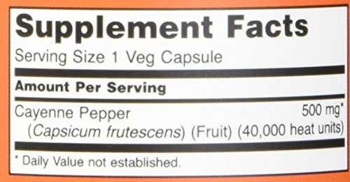 -. Binding : Health and Beauty -. Brand : NOW Foods -. EAN : 0817796025106 -. Feature : Cayenne pepper (Capsicum frutescens) has been used as a food and by traditional herbalists for thousands of years / he hot and spicy taste of cayenne pepper is P.R.Imarily due to a component known as capsaicin / Supports Blood Vessels / Pack of 3 / 100 count per pack -. IsAdultProduct : 0 -. Label : NOW Foods- Nutrition and Wellness -. Manufacturer : NOW Foods- Nutrition and Wellness -. NumberOfItems : 1 -. PackageQuantity : 1 -. ProductGroup : Health and Beauty -. ProductTypeName : HEALTH_PERSONAL_CARE -. PublicationDate : 2017-01-16 -. Publisher : NOW Foods- Nutrition and Wellness -. ReleaseDate : 2017-01-16 -. Studio : NOW Foods- Nutrition and Wellness -. Title : NOW Cayenne 500 mg, 100 Veg Capsules (3 Pack) -. UPC : 817796025106