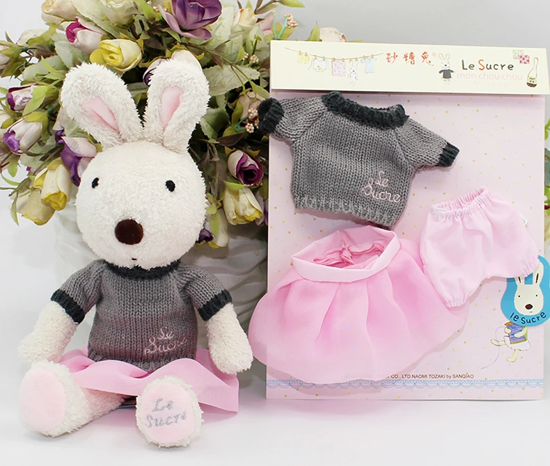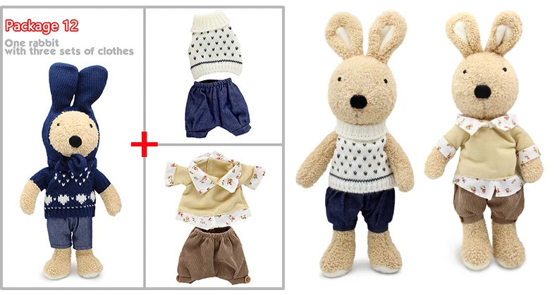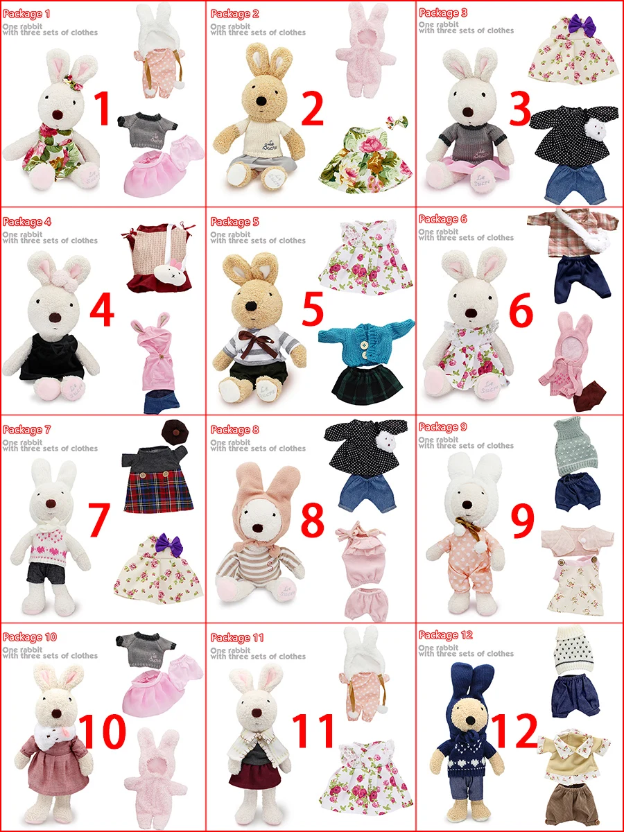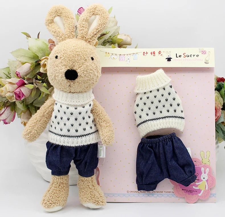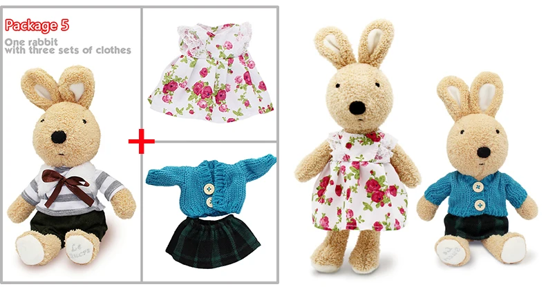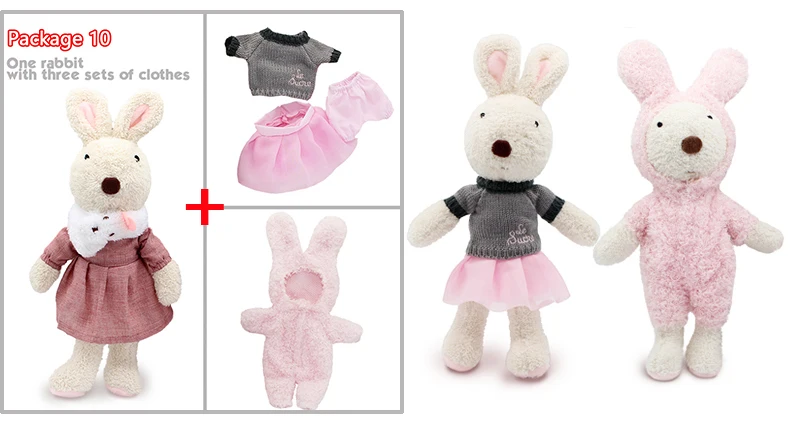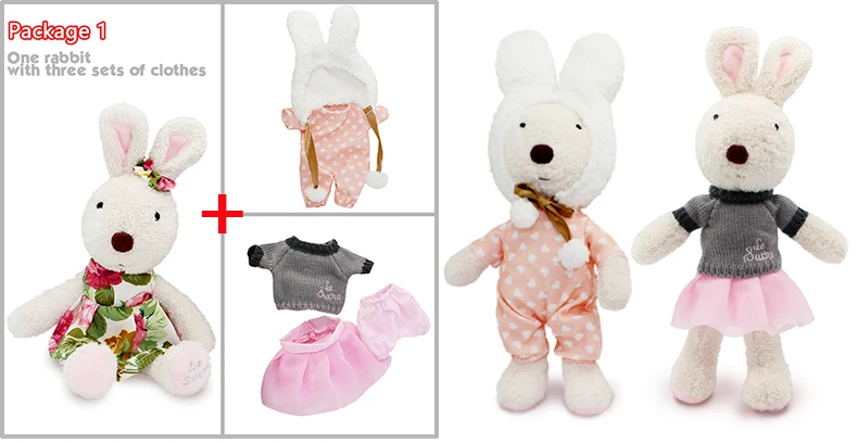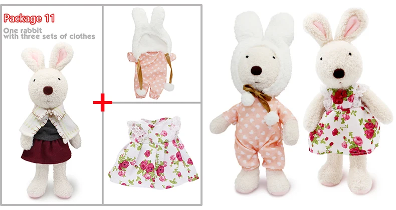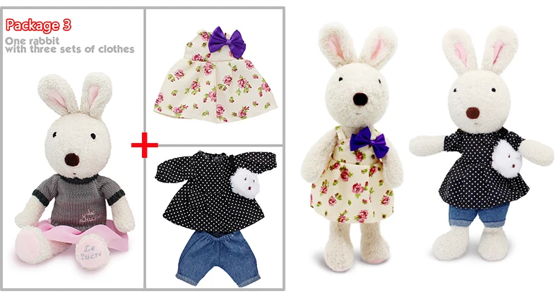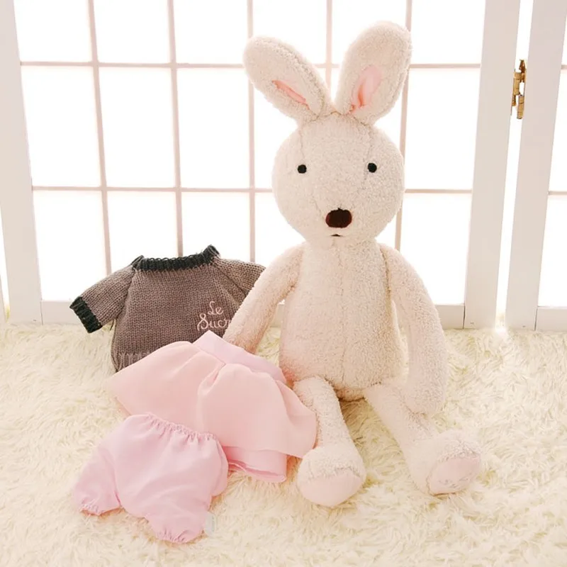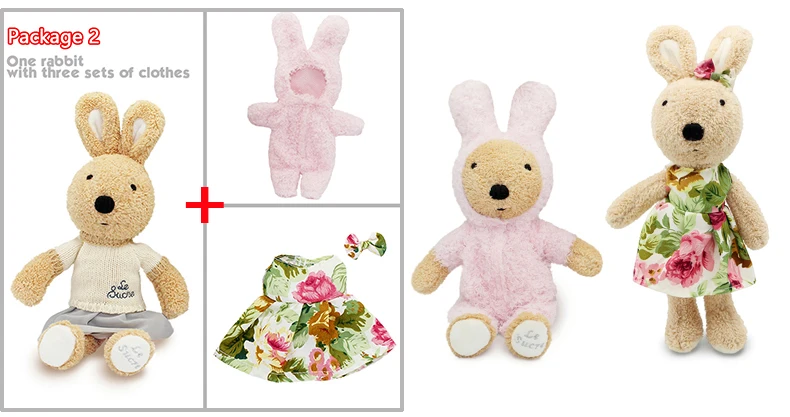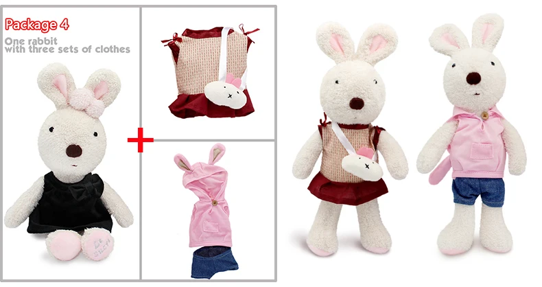 カワイイオリジナルバニーウサギのぬいぐるみ人形、1ウサギ+ 3セットの服、ぬいぐるみ子供女の子のおもちゃギフトでかわいい服