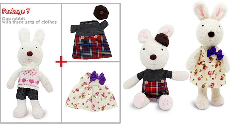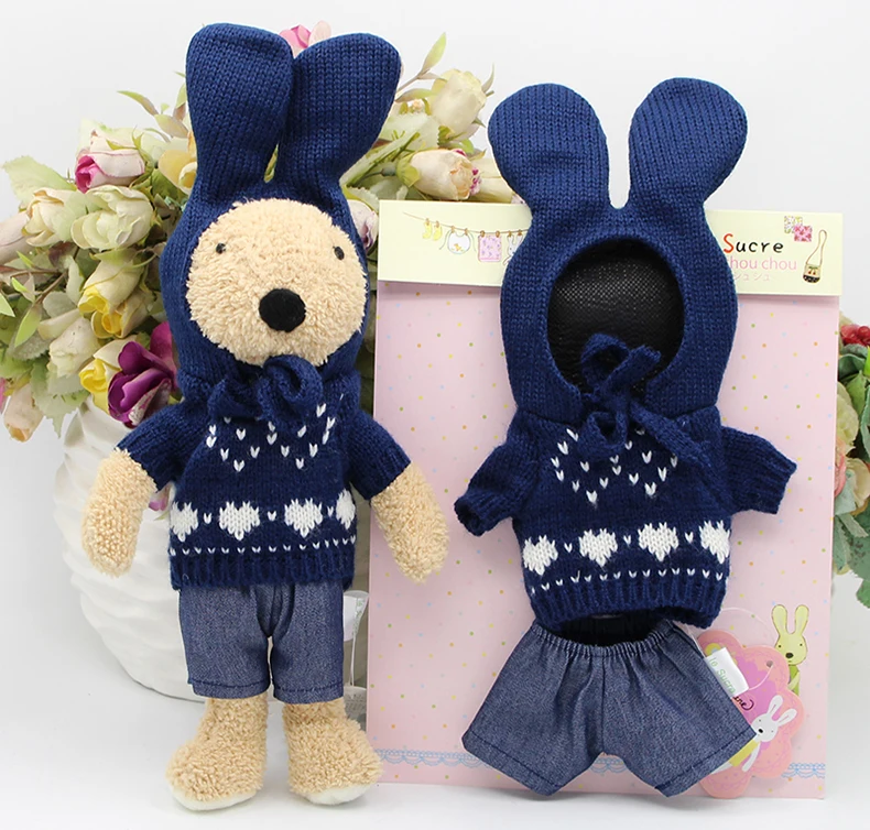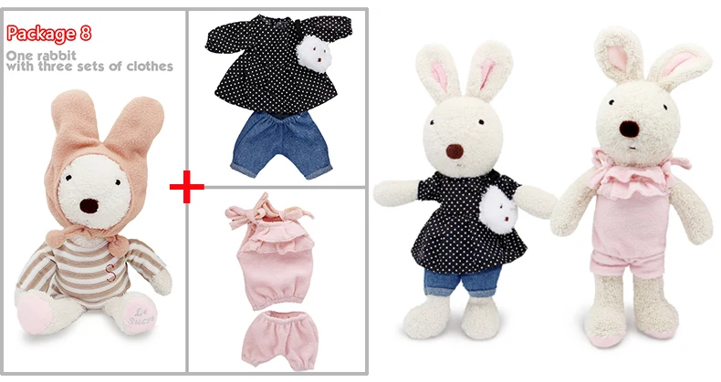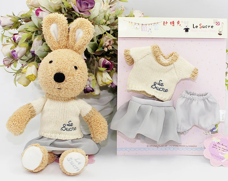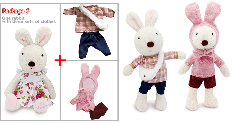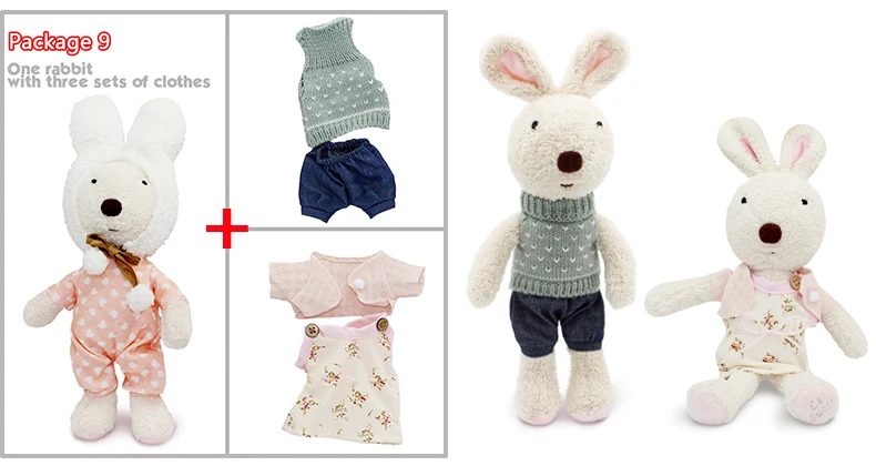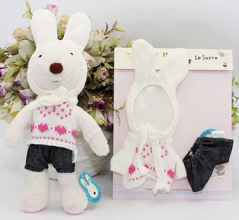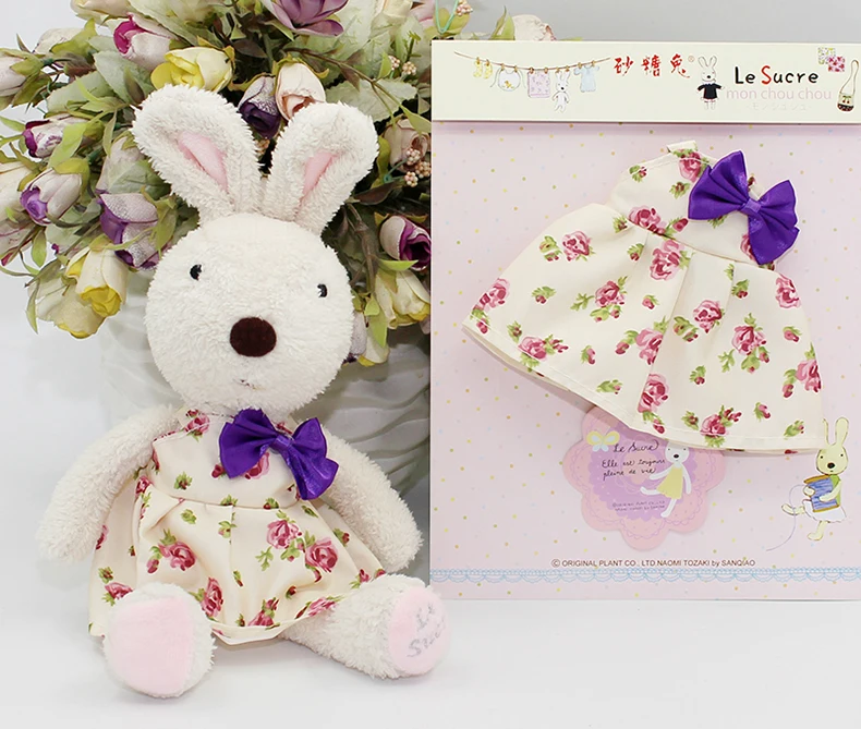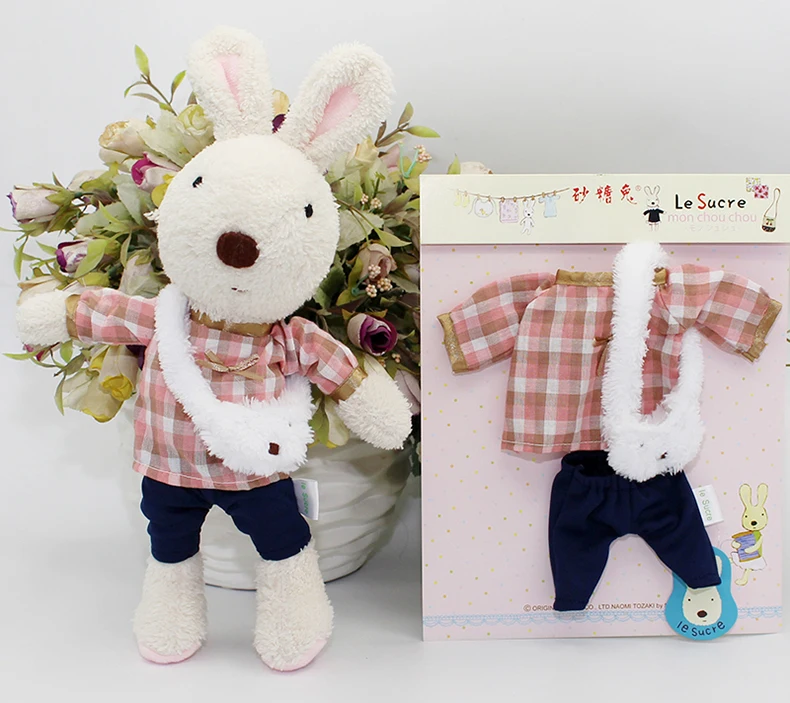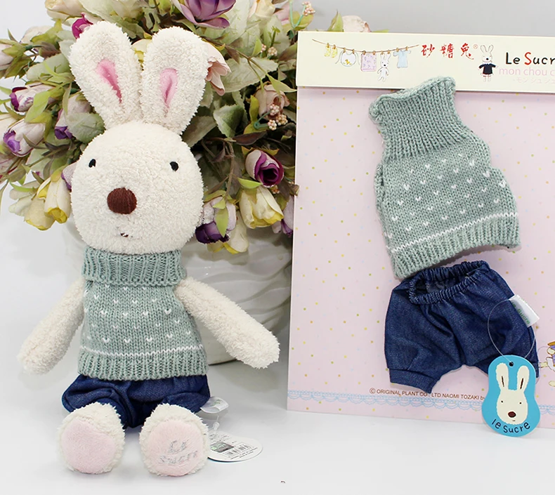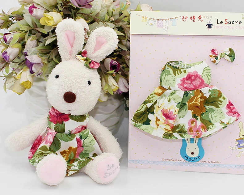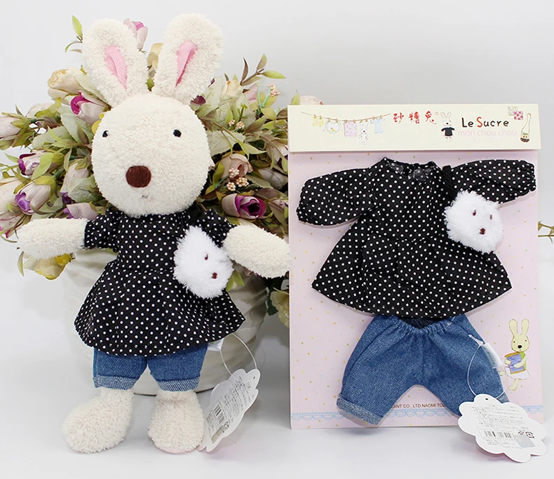 カワイイオリジナルバニーウサギのぬいぐるみ人形、1ウサギ+ 3セットの服、ぬいぐるみ子供女の子のおもちゃギフトでかわいい服