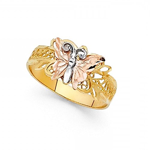 -. Title : 14k Yellow White Rose Gold Butterfly Ring Diamond Cut Fashion Style Solid Tri Color 10MM