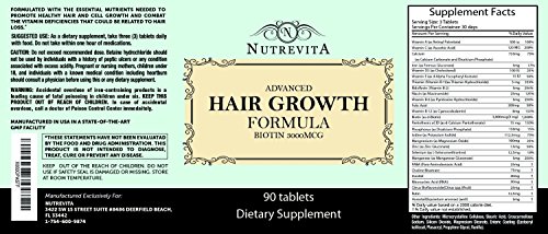 This combats any biotin deficiency, which leads to thinning hair and nails. Biotin is widely recommended to thicken, strengthen and stimulate hair and nail growth. We have carefully selected the quantity of biotin in order to give you maximum results, whilst not causing skin out breaks & upset stomach like other brands.NutreVita Guarantee - Please keep in mind, what we offer is not a miracle drug/quick fix, but a legitimate specially formulated vitamin that when taken as directed, seems to work extremely well for lots of people. All we ask is you give us a shot, if for any reason it's not right for you, you have 60 days to let us know and we'll give you 100% of your money back-no questions asked!