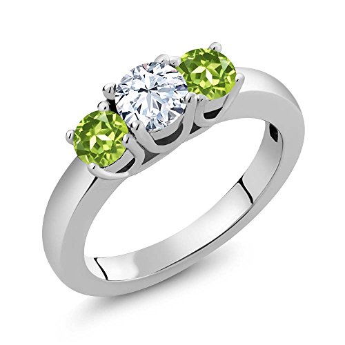 -. Title : 1.35 Ct Round White Zirconia Green Peridot 18K White Gold Ring