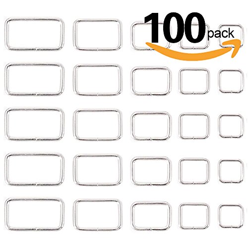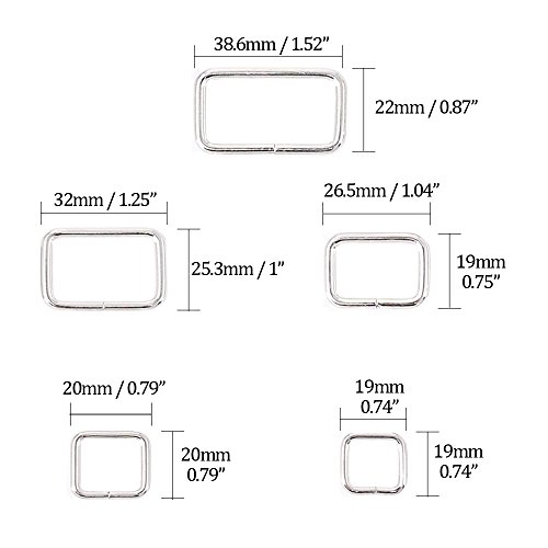 Swpeet 100 Pcs Asorted Metal Rectangle Ring, Webbing Belts Buckle for for Belt Bags DIY Accessories - 13mm / 15mm / 20mm / 25mm / 35mm