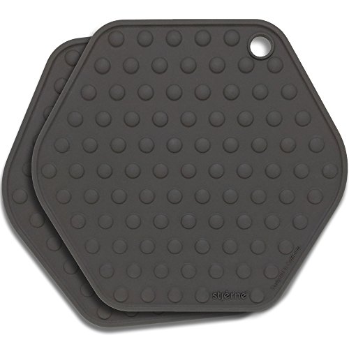 Stjerne Set of 2 Multipurpose Large Silicone Trivets, Mat, Multiple Spoon Rest, Jar Opener, Pot Holder, Coaster, 5-in-1, Heavy Duty & Flexible (Charcoal)