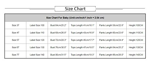 Size Details: Size:3T ?Label Size:100 ?Bust:64cm/25.2" ?Tops Length:41cm/16.1" ? Pants Length:58cm/22.8" ?Height:100CM Size:4T ?Label Size:110 ?Bust:68cm/26.8" ?Tops Length:43cm/16.9" ? Pants Length:60cm/23.6" ?Height:110CM Size:5T ?Label Size:120 ?Bust:72cm/28.3" ?Tops Length:45cm/17.7" ? Pants Length:62cm/24.4" ?Height:120CM Size:6T ?Label Size:130 ?Bust:76cm/30.0" ?Tops Length:47cm/18.5" ? Pants Length:64cm/25.2" ?Height:130CM Size:7T ?Label Size:140 ?Bust:80cm/31.5" ? Tops Length:49cm/19.3" ?Pants Length:66cm/26.0" ?Height:140CM About Commodities:? ★1. There may be a little difference of the color between the picture and the real goods because of the pixel. We hope you can understand sincerely. ★2. Please allow slight deviation for the color and measurement. Thanks. ★3. The goods will be delivered to you about18-25 days, if you need it in urgency you can choose DHL, the delivery time is 3-5 days. Please contact us if you have question about the delivery ★4.My store updates often, you are welcome to visit here at any time. ? 0 |