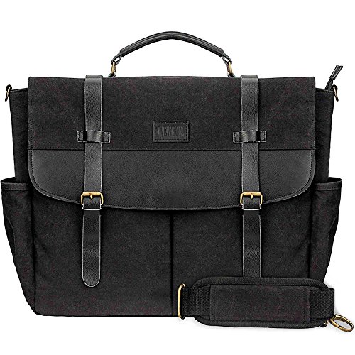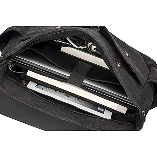 -. Binding : Electronics -. Brand : WEWEON -. Color : balck -. EAN : 0714532149228 -. Feature : ★LARGE CONVENIENT COMFORTABLE EASY CARRY MESSENGER BAG designed for your travelling, work, business, commuting, school, university and daily usage. Also protect and transport to your electronics. Large Briefcase/Satchel/Vintage Bag size: 19 (L) * 14 (H) * 5 (W) inches. / ★TOP GRADE QUALITY MATERIALS: High density cotton canvas, genuine leather, bronze hardware with soft foam shoulder pad can be worn on the shoulder or cross body. Especially the flap over has 2 bronze strong magnetic button keep the laptop messenger bag shape well. / ★EASILY FITS LAPTOPS, TABLETS AND DEVICES: Special design with dedicated padded computer compartment keeps your laptop protected. Large Pockets and sleeves for all Acer / Asus / Dell / Fujitsu / Lenovo / HP / Samsung / Sony / Toshiba etc.Fits well the laptops size from 10, 11, 11.6, 12, 13, 13.3, 14, 14.7, 15, 15.4, 15.6 inches to a maximum width of 17 inch. / ★PLENTY ROOM KEEP GEAR ORGANIZED: Large inside separate sections for files, folders, A4 magazine, textbooks, power bank, mobile phone, iPad,tablet,wallet and other accessories safely inside; the flap over two pockets hold your business essentials, two sides pockets for bottle, umbrella and other personal accessories / ★100% SATISFACTION GUARANTEED: If there are any issues with your product,simply contact us and we will give you a full refund AND send you a NEW replacement.You don't have to return the product!This Best Delivery service ONLY fulfilled by Amazon and seller "WEWEON"store. If offered by other sellers in this listing will be different item. All rights reserved. -. Label : WEWEON -. Manufacturer : WEWEON -. PackageQuantity : 1 -. ProductGroup : PC Accessory -. ProductTypeName : CARRYING_CASE_OR_BAG -. Publisher : WEWEON -. Studio : WEWEON -. Title : Large Canvas Laptop Messenger Bag-Classic Flapover Leather Breifcase-Vintage Satchel Business Shoulder Bag for Men -. UPC : 714532149228