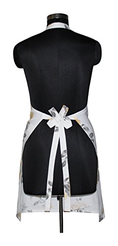 Airwill Apron,Fashion Printed Damask Women Kitchen Apron with Adjustable Buckle on Neck & 1 Center Pocket,Perfect for Cooking,Baking,27 inches in Width and 32 Inches Full in Length (White/Orange)