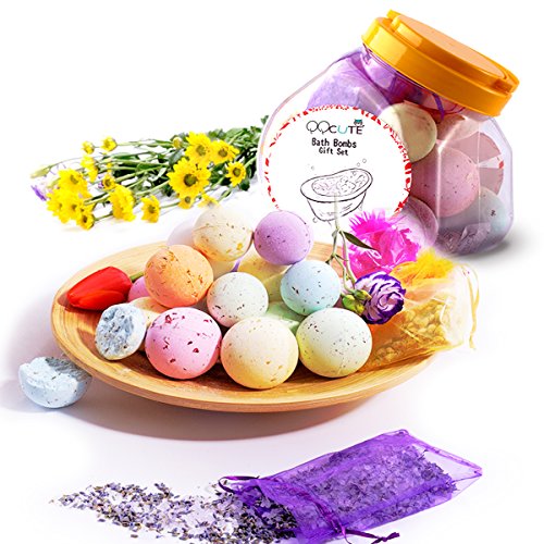 QQcute bath bombs family set brings a unique spa qualtiy experience to you and your family at home and leaves your skin feeling silky and soft Premium value 8 large size balls slightly large than golf ball, 10 small size balls equal to table tennis ball. All are made with natural ingredients, ideal healthy choice for natural healing and relaxing