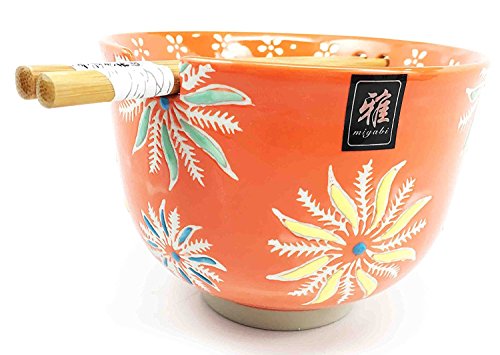 Japanese Design Orange Flower Blossoms Ceramic Ramen Udong Noodle Soup Bowl and Chopsticks Set Great Gift For College Students Housewarming Ramen Lovers Asian Living Home Decor