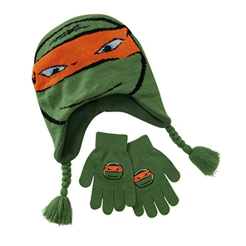 Studio : Berkshire Fashions Publisher : Berkshire Fashions Binding : Apparel Product Description The ninja skills are strong with this boys or girls Teenage Mutant Ninja Turtle 2 piece hat and gloves set. The dark green hat features a Michaelangelo graphic on the front. Coordinating stretch gloves with ribbed cuffs and palm grippers complete the look. 100% Polyester inner lining/100% Acrylic outer knit of hat. 97% Acrylic/3% Spandex gloves. One Size fits most boys or girls size 4-7. Hat measures approximately 8.5 inches at opening; stretch gloves are 6.5 inches from wrist to tip of middle finger. 0