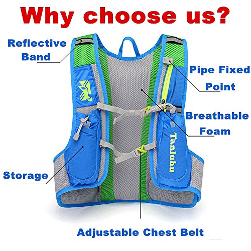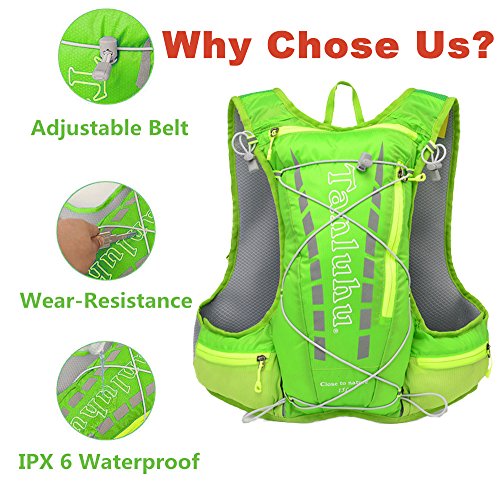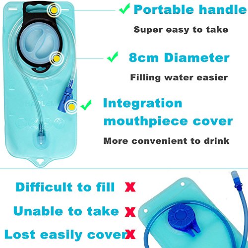 -. Feature : SAFE GOOD TASTE AND LEAK PROOF WATER BLADDER: This hydration pack's 2L water bladder is made of PDA APPROVED FOOD GRADE TPU material.And we promise that it doesn't contain any chemical toxic and it's BPA FREE.And we promise that our water pack will provide you with good taste and safe water all the time.In addition,the edges of the water bladder has adopted the updated LEAK PROOF technology. And the integration design can keep the water bladder meticulously sealed. / COMFORTABLE AND GOOD VOLUME: Our hydration pack is made of breathable foam,which can provide you with comfortable and cool experiences.And the strap of our hydration backpack is breathable as well. What's more, our water pack contains more space for your hiking equipment.The hydration pack will fit your clothes, iPad, phones quite well. / LIGHT AND WELL FIT: The breathable foam and nylon materials make the hydration pack light and durable. And the elastic belly bands hold you tighter than those hydration backpacks which doesn't have belly bands. And it can help you save your energy and it can FIT MEN AND WOMEN QUITE WELL. / WATER PROOF AND ANTI SPLIT HYDRATION PACK WITH REFLECTIVE BANDS:IPX 6 nylon material makes our hydration backpack water proof and anti split.In order to provide our customer with safer outdoor experiences, reflective bands are enclosed with our hydration pack. It will help you warn others and protect you from accidents. / 100% MONEY BACK GUARANTEE AND LIFE TIME WARRANTY: We try our best to provide our customers with the most satisfying services. And we have 100% MONEY BACK GUARANTEE AND FREE REPLACEMENT SERVICES.There is no need to worry about how to get your money back. We will devote ourselves to satisfying your requirements.