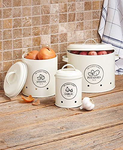 Set of 3 Metal Onion Garlic Potato Kitchen Food Storage Canister Crock