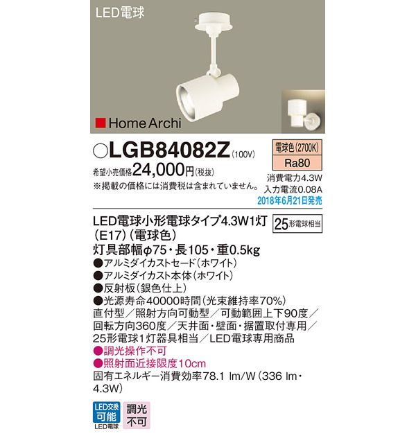 ●光源:LED電球小形電球タイプ4.3W1灯(E17)(電球色)、色温度:2700K、光源寿命40000時間(光束維持率70%)