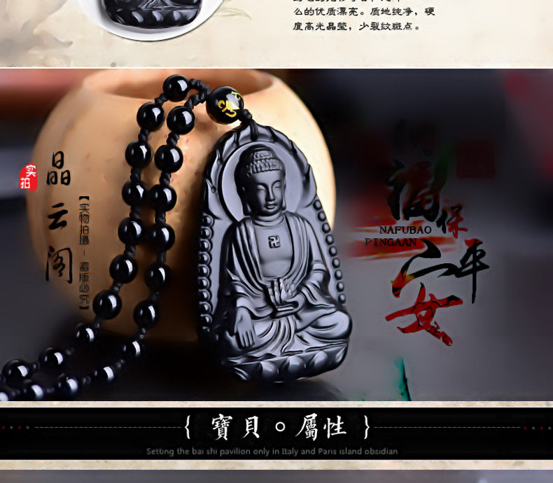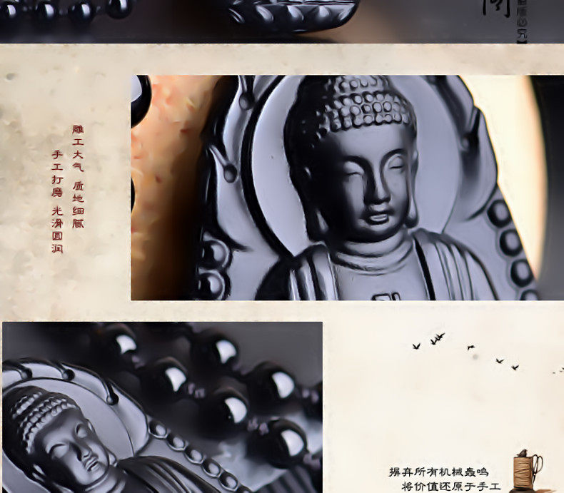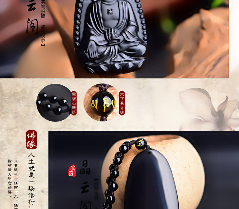 开光天然磨砂黑曜石守护神吊坠 生肖属狗属猪本命佛男女款项链