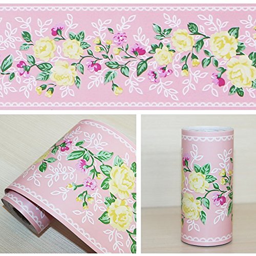 -. Title : SimpleLife4U Yellow Rose Wallpaper Border Roll Self-Adhesive PVC Removable Rustic Sticker Wall Borders for Girls