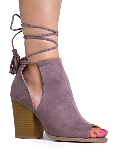 -. Binding : Apparel -. Brand : J. Adams -. Department : womens -. Feature : ESSENTIAL SHOE FOR YOUR CLOSET: Gorgeous and sexy high heel open toe shoes are an easy everyday basic to complete your look. This revolutionary trend has become a wardrobe staple. These slide on booties are made from 100% vegan faux suede with a sturdy high quality lace up design. This comfortable and easy pair of Franny Peep Toe sandals by J. Adams makes it so easy to keep up with the most current fashion trends - yet remain environmentally conscious! / EFFORTLESS COMFORT & SLIP RESISTANT: An ultra-soft, comfortable vegan lining and a quality cushioned footbed for all day walking comfort. Featuring a non-slip manmade outsole these mule booties will never fail to impress you with how charmingly they complete your look. / EASY ON/OFF: Secured with an ankle strap buckle enclosure for easy wear adjusting to your foot size. Neutral coloring makes it easy to pair with your favorite tops, dresses and bottoms. Available in black and taupe! / JUST ENOUGH LIFT: Enjoy the premium faux leather and wood chunky stacked heel that adds the right amount of lift to lengthen your legs and make your ankles and calves look amazing. The vegan eco-conscious material will also keep your mind at ease. / MEASUREMENTS: Approx 4" Heel. True to Size. -. ProductGroup : Shoes -. ProductTypeName : SHOES -. Title : J. Adams Peep Toe Lace Up Sandal Bootie - Stacked Mule High Heel - Open Toe Cutout Ankle Strap - Cady by