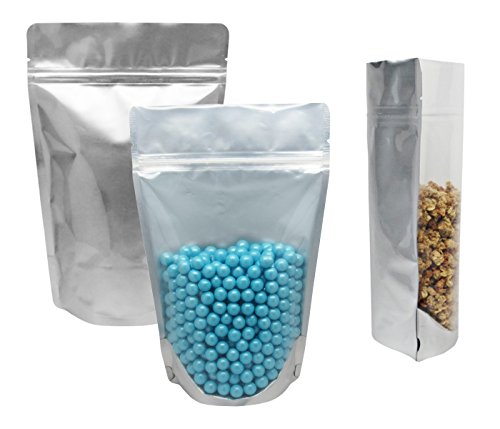 Baking Addict Wholesale Foil Stand-Up Heat Sealable Resealable Zip Pouch Food Storage Packaging Bags with Tear Notch, 8 oz, Clear/Silver, 100 Count