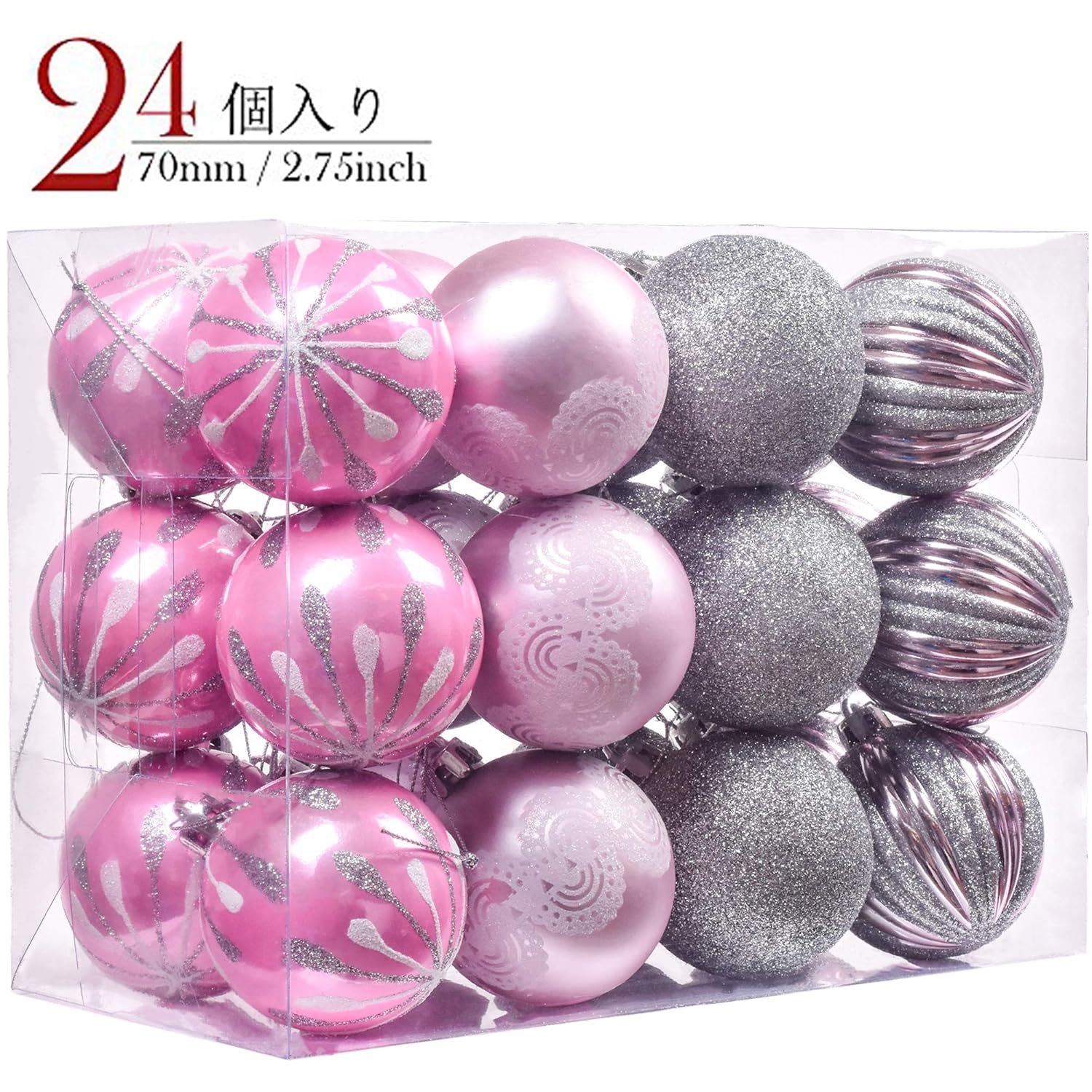 2018年新登場!!エレガントなシルバーとミステリアスで甘いピンクを融合としたピンク系のオーナメントはロマンティックなクリスマスを見事に演出します。 サイズ豪華な85個セット・16種類大集合!!これだけの高級オーナメントを単品で購入すれば、あれこれ悩む必要もなく、お手持ちのツリーを華やかになります。 イルミネーションと一緒に飾ればキラキラと美しく反射して、クリスマスの雰囲気が抜群。 おしゃれなシルバーとピンクをベースしたボールは、ロマンティックなクリスマスを演出します。 アクセサリーはすべてひもをつけて,とても便利につるすことができる.包装も頑丈なデザインを工夫しましたので、ご安心ください。ただ一つの単品でツリーを360度全面的に飾りたいお客様におすすめです。