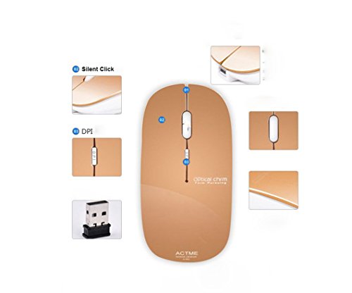 Title : ACTME T5 Rechargeable Optical Ultra Thin Wireless Gaming Mouse Silent Click Gold