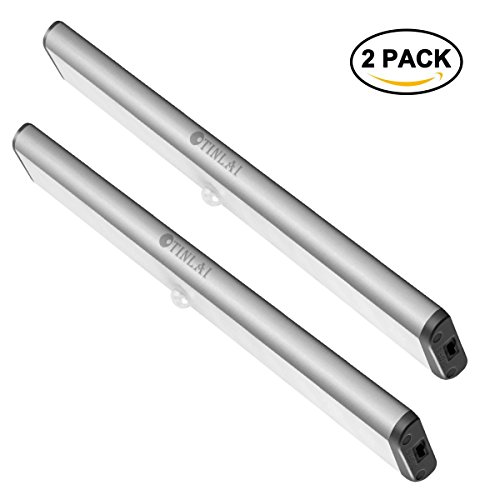 2pcs Under Cabinet Lights,10 LED Motion Sensor Lights, Night Light,Led Battery Lights,Motion Led Light Bar, USB Rechargeable Magnet LED Lights Stick on Anywhere Otinlai (Silver)