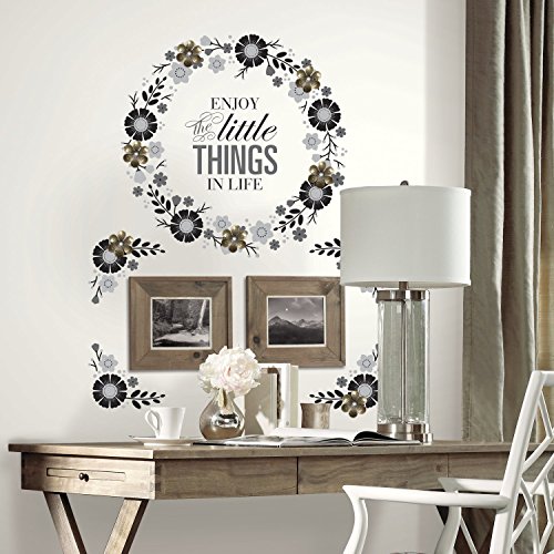 RoomMates RMK3237GM Floral Wreath Quote with Embellishments Peel and Stick Giant Wall Decals