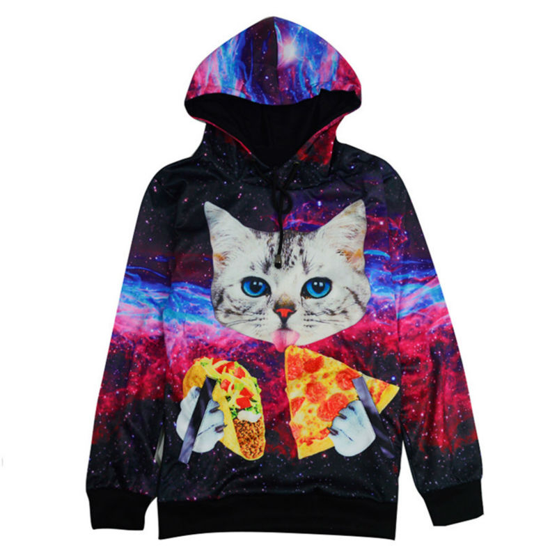Pattern of sweatshirts: Galaxy Cat Licking Pizza 3D Print