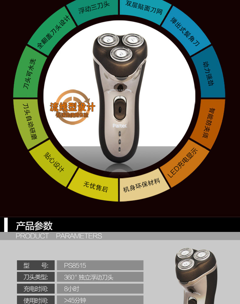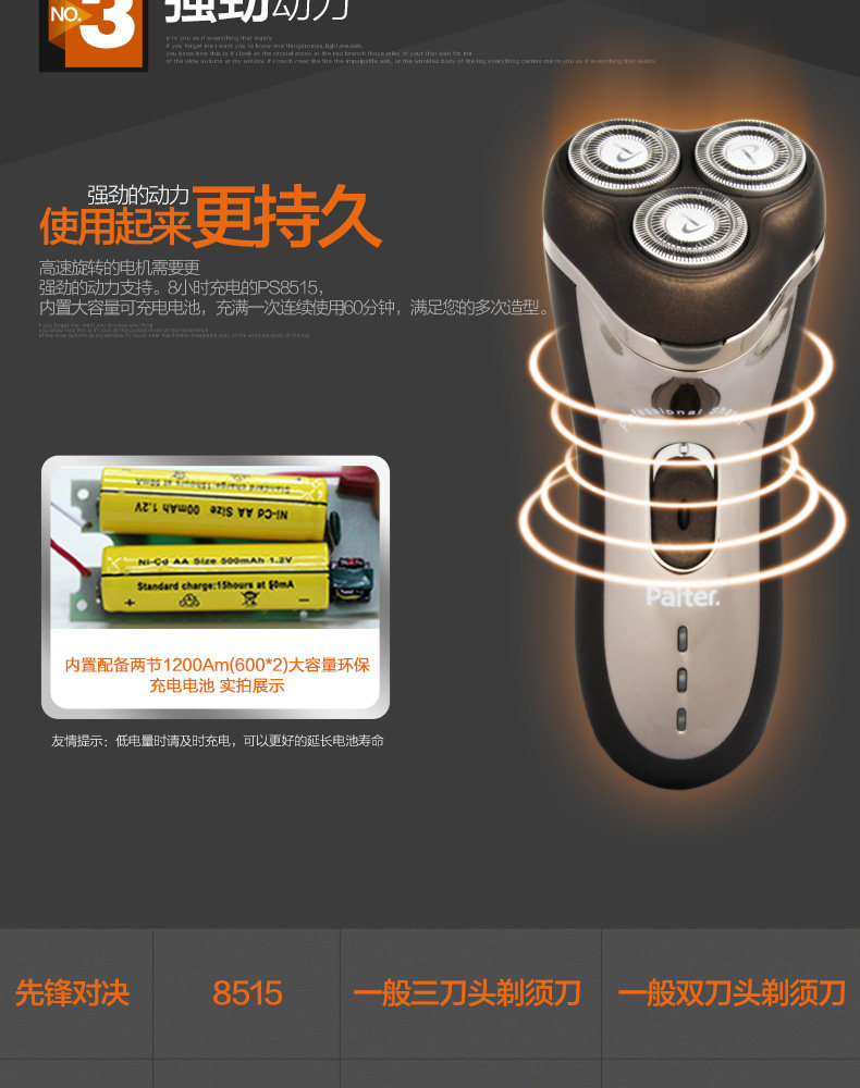剃须刀男PS8515 电动充电剃胡刀3刀头刮胡刀