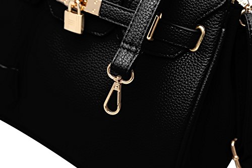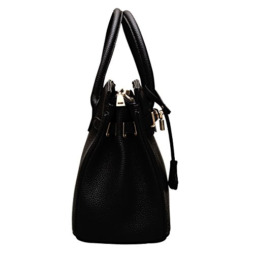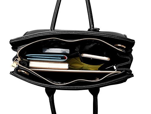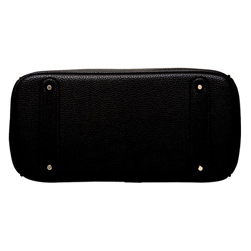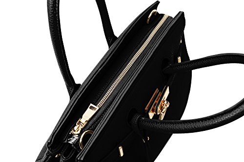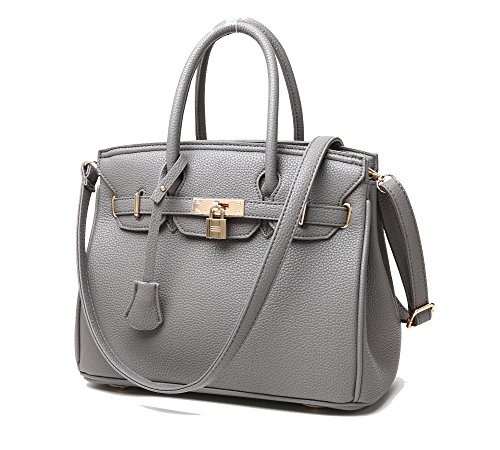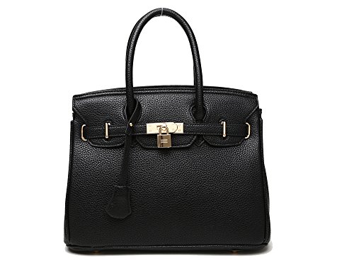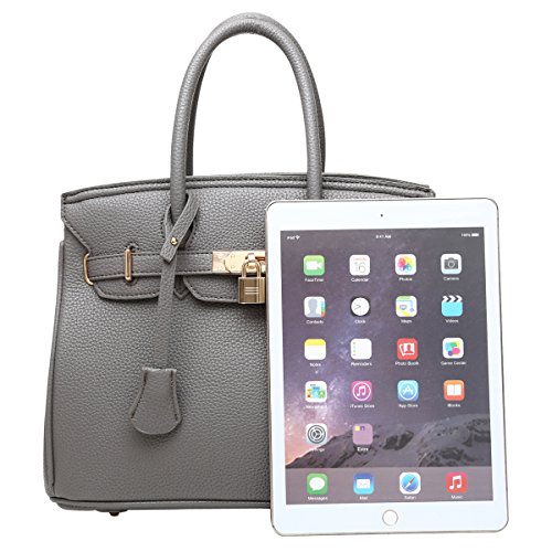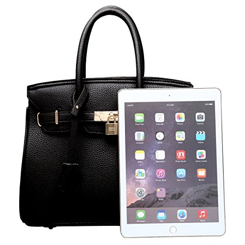 -. Feature : STYLISH & PRACTICAL: Womens Fashion Designer Purse handbag satchel with Metal lock pull-down lock, top zipper closure, silver toned hardware; Perfect for daily use: for work, shopping, school, date night, parties, weddings, church / HIGH QUALITY HANDBAG: Sturdy, Textured Faux Leather exterior which has the look and feel of real leather; top zipper closure for easy access to all your belongings, double hanndles / VERSATILE BAG WITH TOP HANDLE & CROSSBODY OR SHOULDER STRAP: Sturdy Double handles with 4" Drop; Dimensions: 12" wide x 10" tall x 6" deep; Designed with Large capacity to comfortably hold an iPad, phone, wallet, cosmetics, make-up, books or magazines, travel accessories and other essentials / ROOMY PURSE WITH SEVERAL STORAGE OPTIONS: Back wall zipper pocket + two pouch pockets for cell phone, keys, coins etc; Spacious interior that is Fully lined / EXCELLENT CUSTOMER SUPPORT: You will love the superb quality of this gorgeous designer inspired pocket book handbag. However If you are not fully satisfied, simply return it for a full refund. No questions asked