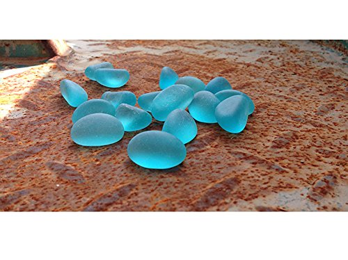 SumDirect 1 Pound 70Pcs Tumbled Matte Beach Sea Glass Beads for Aquarium,Crafts ,Decor and Etc (Matte, Sea Blue)