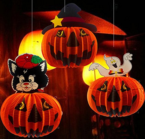 Pumpkin Lanterns, Meiwo 3 Pack Pumpkin Hanging Paper Lanterns for Halloween, Haunted house, Bar, Company Celebrations