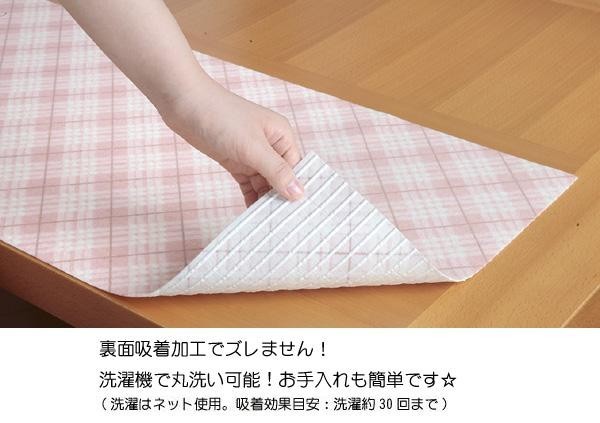 | 「ズレないランチョンマットがほしい」というお客様の声に応え、裏面に吸着加工を施しました。マットを触ってもズレず、汚れても繰り返しお洗濯ができます。120cmのロングサイズで、お好きな大きさに切ってアレンジできます☆ |