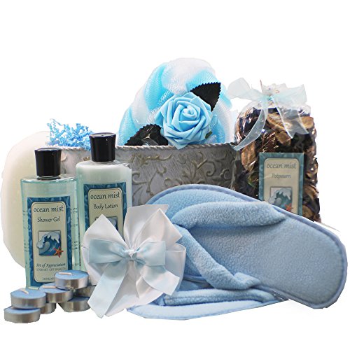 Pamper her with a personal course in the three R's: Renew... Recharge... Rejuvenate! Our superbly equipped spa bath and body sets soothe the body and soul. Each basket is hand crafted with attention to detail, shrink wrapped and tied with a bow for presentation, ready for gift giving. Add a personalized message with your order by selecting gift at check out. The Spa products featured in this gift are part of the luxurious Art de’ Moi Spa Line, manufactured and distributed exclusively by Art of Appreciation Gift Baskets.Feature
