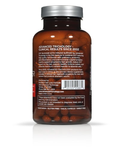 - Feature : Used for progressive hair growth, immuno-support and maximum nutrient transfer to external cells / Advanced prebiotic, probiotic, anti-inflammatory and anti-macrobial supplementation / Helps naturally reduce DHT levels that impact hair during patter hair loss / Balances the internal systems preventing the inflammation that causes hair loss / DHT BLOCKER with Immune Support, 100% MONEYBACK GUARANTEE from 120 days of purchase