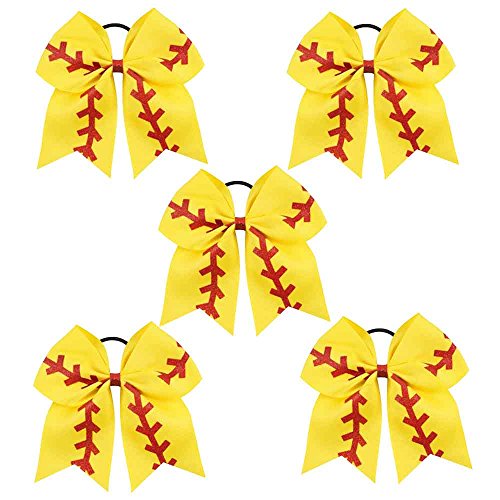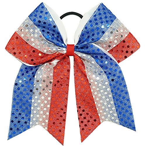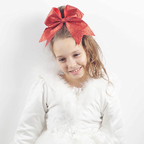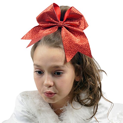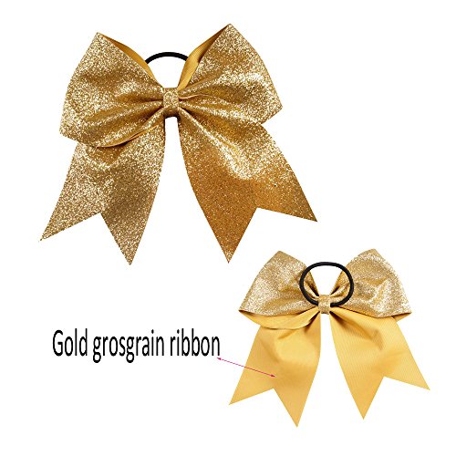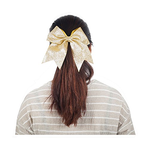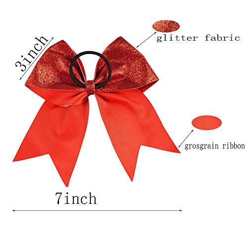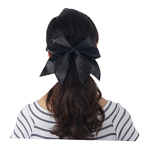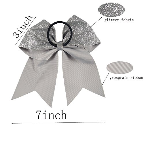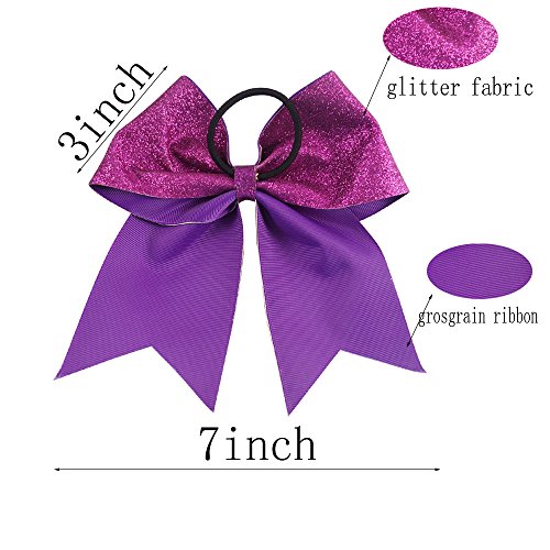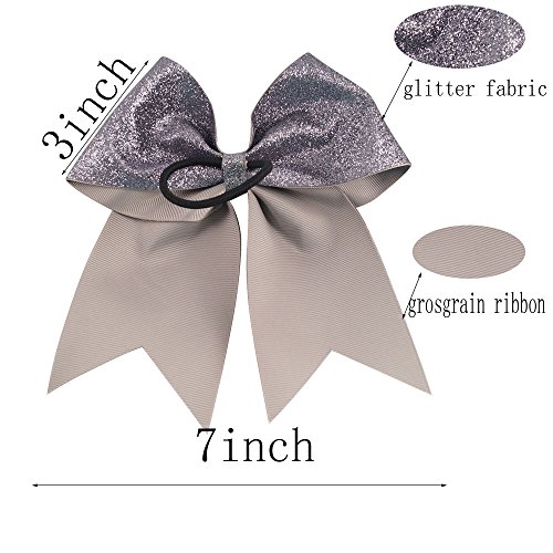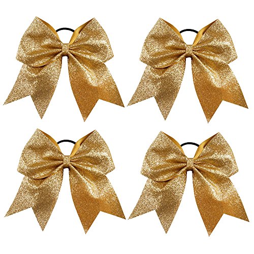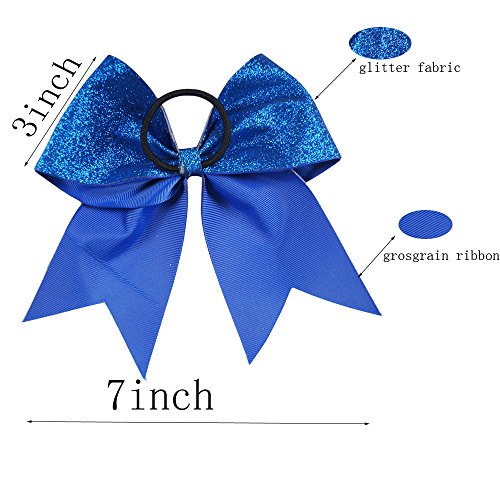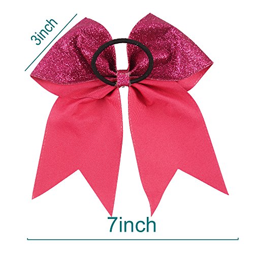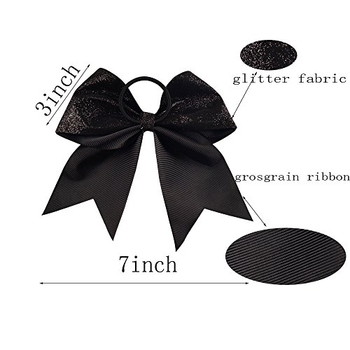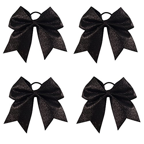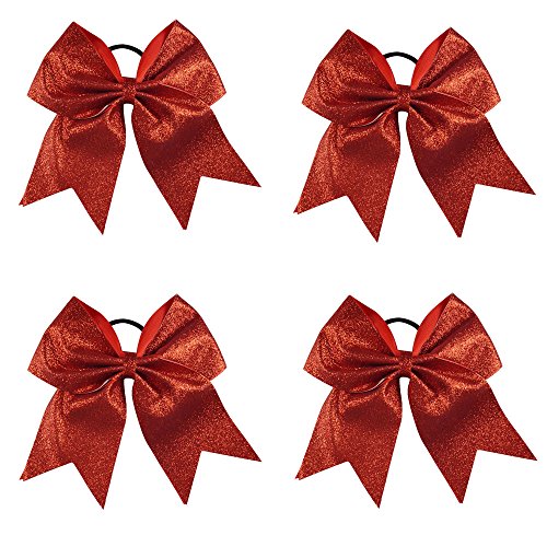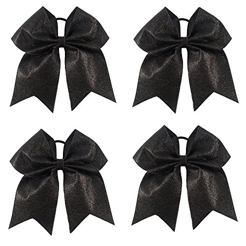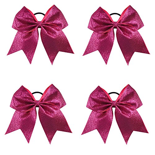 | CN 4Pcs 7" Glitter Cheer Bows With Ponytail Holder Girls Sparkle Cheer Bow |