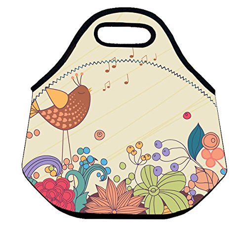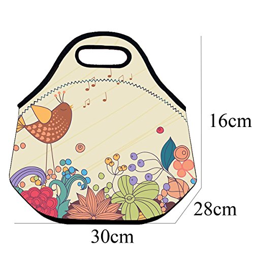 Niyatree Insulated Neoprene Lunch Bag Tote Handbag Snack Bag lunchbox Food Container - Bird
