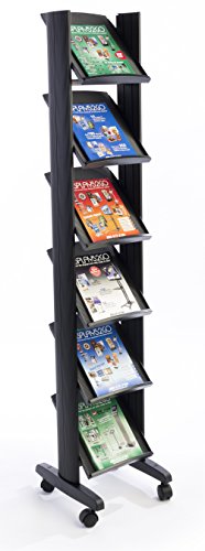 Displays2go ZMAG6S36 Portable Magazine Stand with 6 Shelves (Black Plastic)