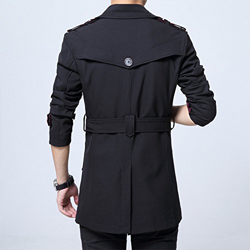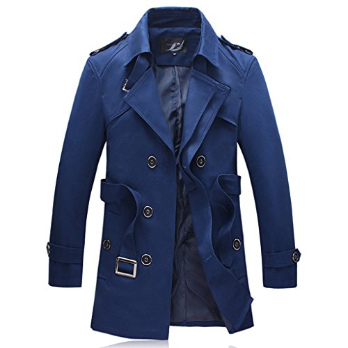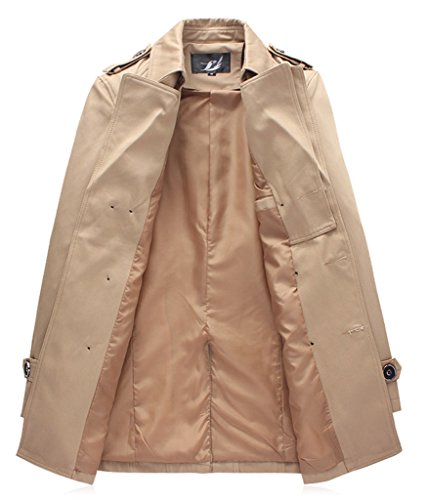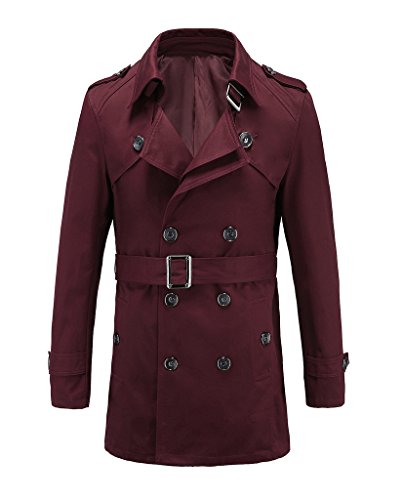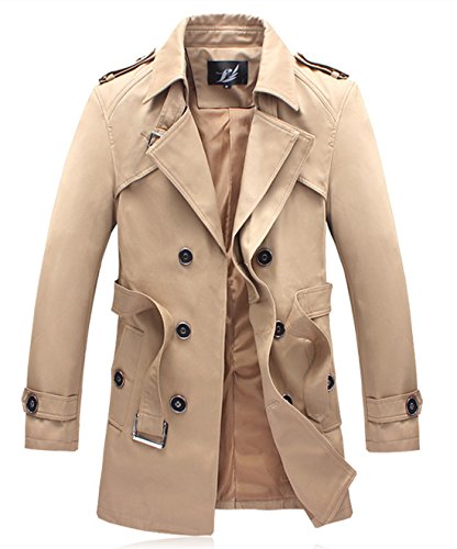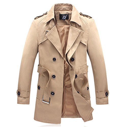 MOGU Men's Double-Breasted Belted Twill Trench Coat