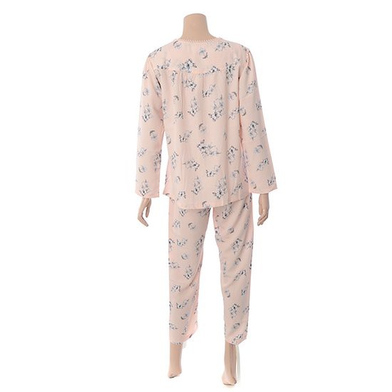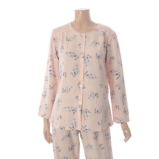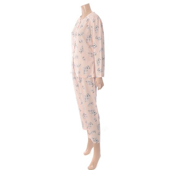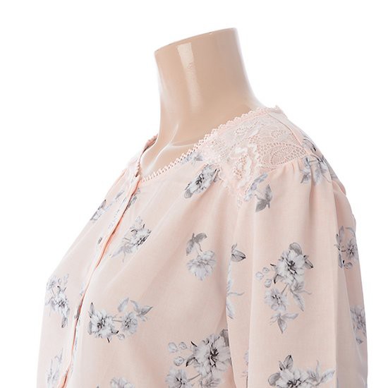 피치 핑크 컬러 올오버 플라워 프린트가 화사함을 주며, 얇은 무광택의 가벼운 소재로 제작되었습니다.